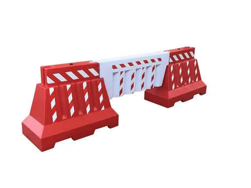 Axnoy Make plastic / crash Barriers are made from virgin grade LLDPE Plastic material. These barriers are designed keeping in mind different requirements of the client. They are modular barriers with interlocking / non interlocking feature. Interlocking system helps in creating an uninterrupted wall. Either sand or water is filled in the barrier to make it heavier. It comes in Red/Yellow Colour which is UV Stabilised / non-fading and resistance to all weather conditions. It can be made in any colour as per client requirement.  It has reflective stickers for better visibility in the night hours / low light area.